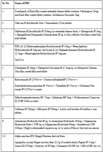 The banned FDCs include combinations of: